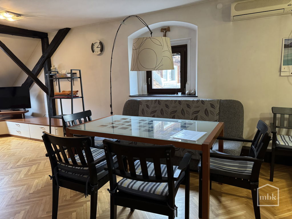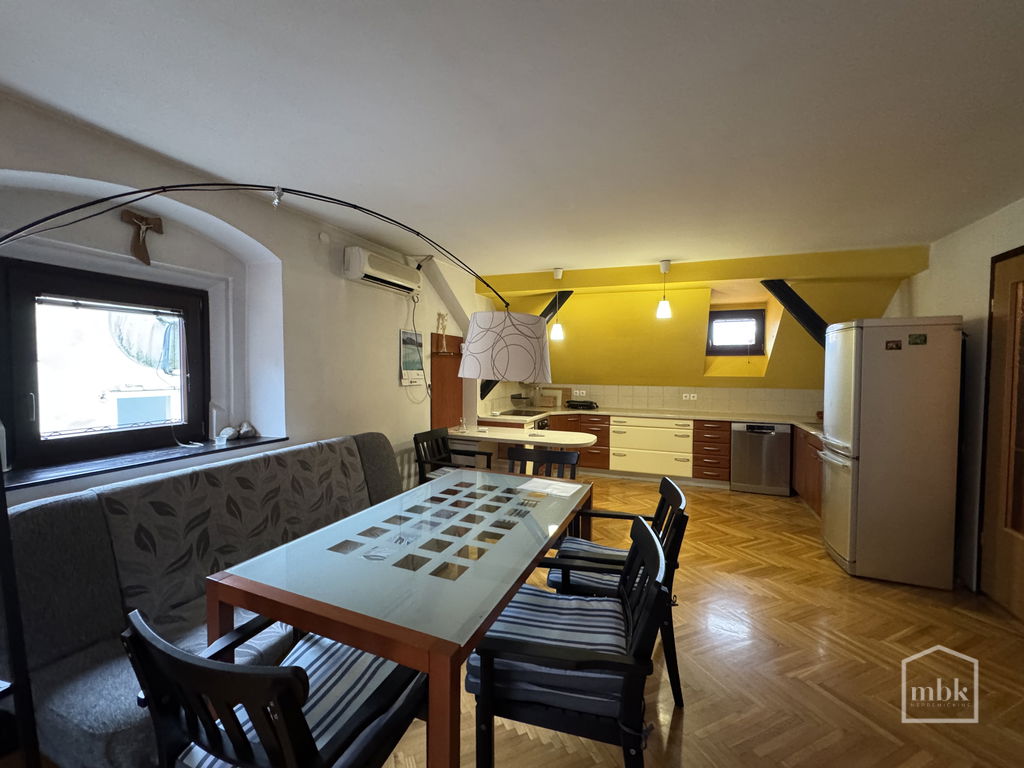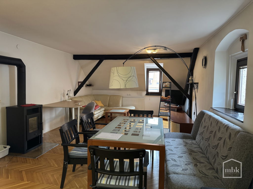 Posredujemo pri prodaji prostornega in opremljenega stanovanja v Škofji Loki na Mestnem trgu. Prostornost in odlična razporeditev nudita prijetno bivanje. Stanovanje je obrnjeno na vzhod in zahod, s pogledom na trg in na grad. Leta 2007 je bilo v celoti prenovljeno z zamenjano elektro in vodovodno inštalacijo. Centralno ogrevanje je preko toplotne postaje (v pritličju), možen je tudi priklop na mestni plin. V dnevni sobi je samostoječ kamin na drva, ogrevanje vode pa je na električni bojler. Stanovanju pripada kletni prostor (drvarnica v pritličju). Parkiranje je omogočeno z dovolilnico na modri coni. Nizki stroški.