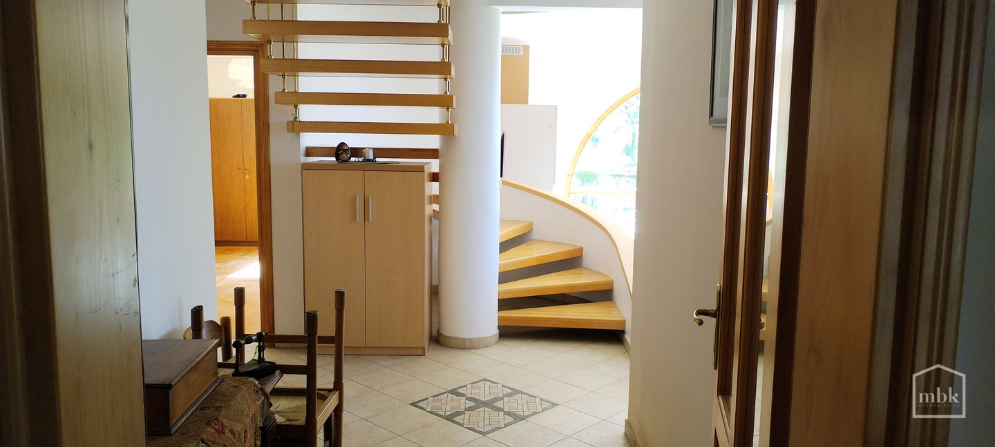 Pritličje: vstopni hodnik, kuhinja z jedilnico in dnevno sobo z izhodom na teraso, zelenico in vrt, dnevni wc, soba in dodatna kuhinja