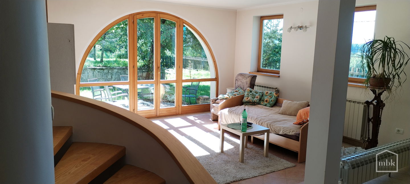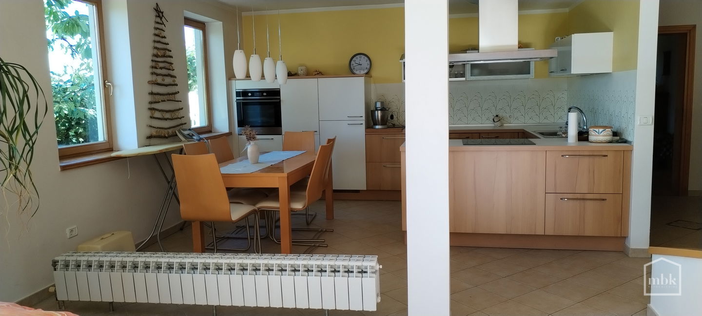 Posredujemo pri oddaji lepo vzdrževane hiše na sončni legi, z odlično razporeditvijo prostorov in z izhodom na zelenico in vrt.